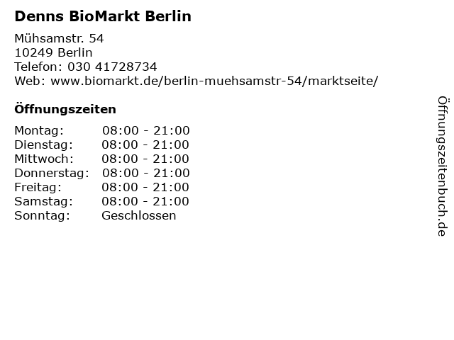 | Öffnungszeiten Denns BioMarkt Berlin in Berlin anzeigen | |
