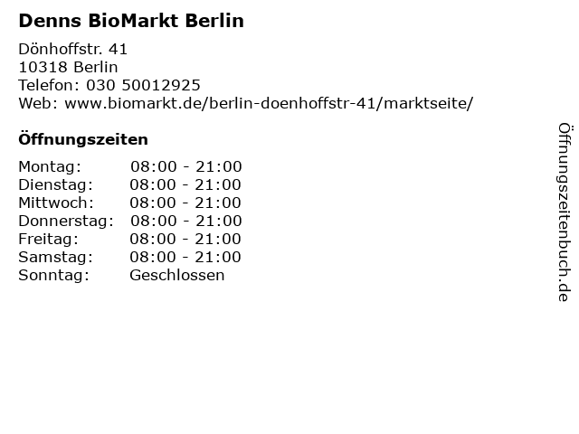 | Öffnungszeiten Denns BioMarkt Berlin in Berlin anzeigen | |