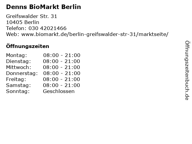 | Öffnungszeiten Denns BioMarkt Berlin in Berlin anzeigen | |