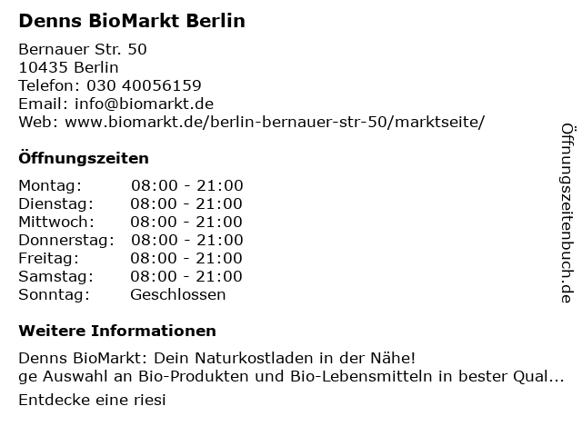 | Öffnungszeiten Denns BioMarkt Berlin in Berlin anzeigen | |
