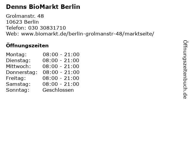 | Öffnungszeiten Denns BioMarkt Berlin in Berlin anzeigen | |
