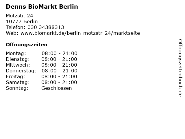 | Öffnungszeiten Denns BioMarkt Berlin in Berlin anzeigen | |