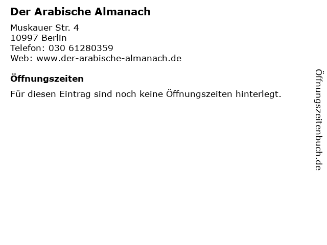 | Adresse Der Arabische Almanach in Berlin anzeigen |