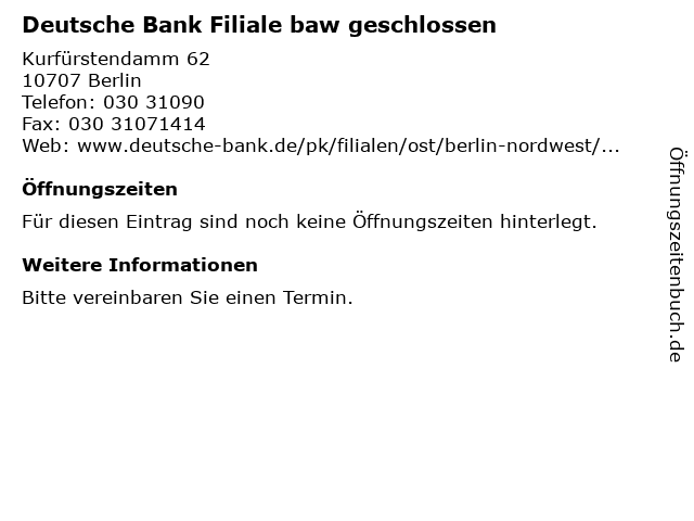 Öffnungszeiten Deutsche Bank Filiale baw geschlossen in Berlin anzeigen