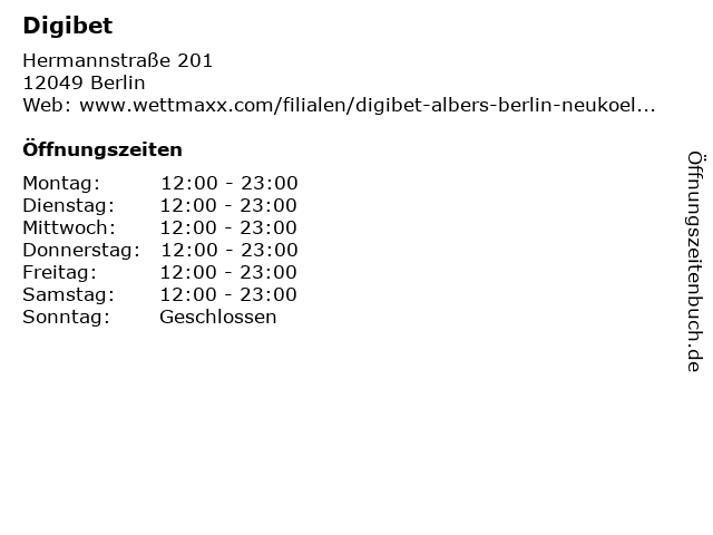 Digibet in Berlin: Telefonnummer, Öffnungszeiten und Adresse