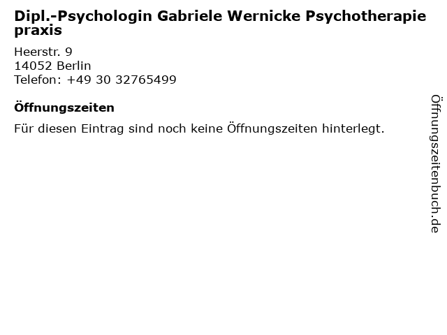 | Dipl.-Psychologin Gabriele Wernicke Psychotherapiepraxis anrufen | |