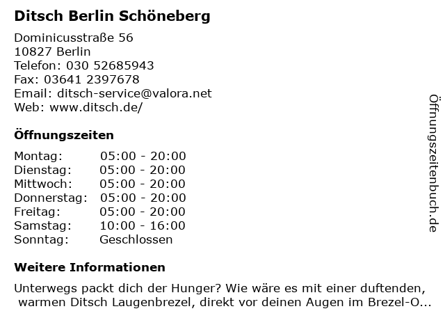 | Öffnungszeiten Ditsch Berlin Schöneberg in Berlin anzeigen | |