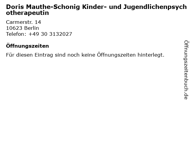 | Doris Mauthe-Schonig Kinder- und Jugendlichenpsychotherapeutin anrufen | |