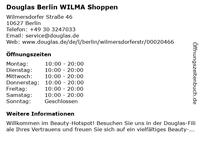 Öffnungszeiten Douglas Berlin WILMA Shoppen in Berlin anzeigen | |