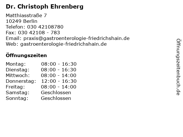 | Öffnungszeiten Dr. Christoph Ehrenberg in Berlin anzeigen | |