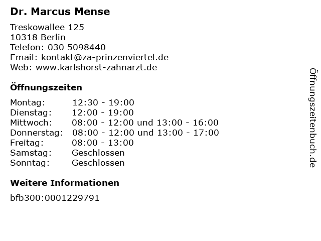 | Öffnungszeiten Dr. Marcus Mense in Berlin anzeigen | |