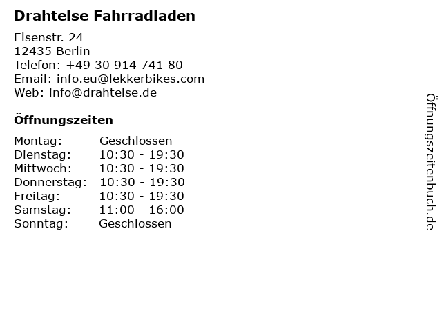 | Öffnungszeiten Drahtelse Fahrradladen in Berlin anzeigen | |