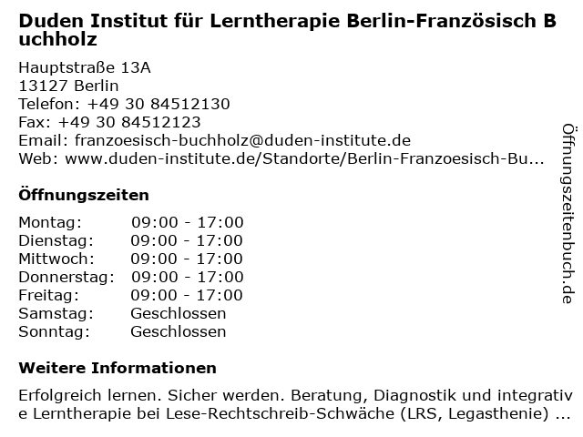 Branchen & Suchbegriffe zu Duden Institut für Lerntherapie Berlin-Französisch Buchholz:buchholz, duden, französisch, institut, lerntherapie, lerntherapie französisch buchholz, lese-rechtschreib-schwäche, lese-rechtschreib-schwäche französisch buchholz, lrs, lrs französisch buchholz, rechenschwäche, rechenschwäche französisch buchholz |