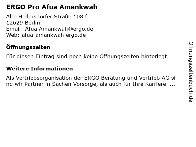| Öffnungszeiten ERGO Pro Afua Amankwah in Berlin anzeigen | |
