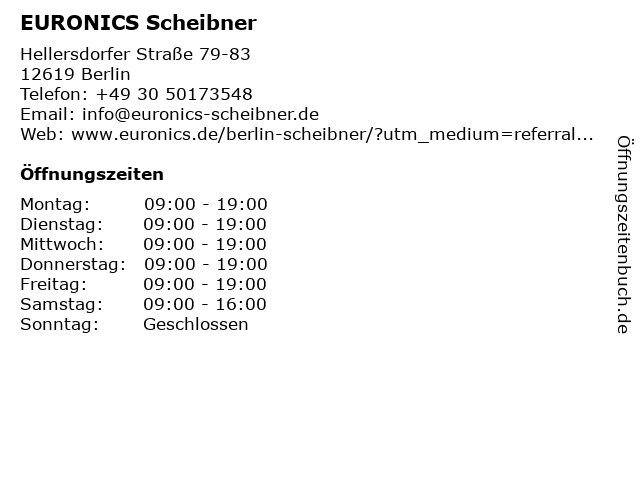 | Öffnungszeiten EURONICS Scheibner in Berlin anzeigen | |