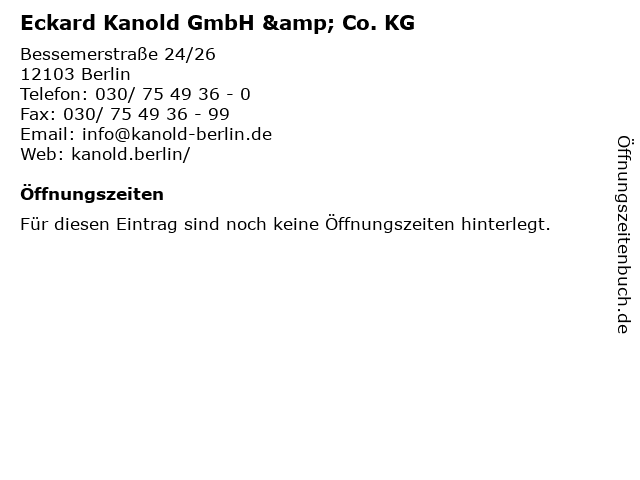 | Öffnungszeiten Eckard Kanold GmbH & Co. KG in Berlin anzeigen | |