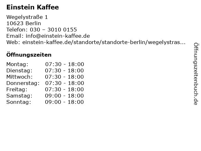 | Öffnungszeiten Einstein Kaffee in Berlin anzeigen | |