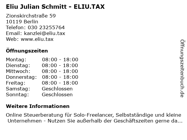 Branchen & Suchbegriffe zu Eliu Julian Schmitt - ELIU.TAX:eliu, eliu.tax, julian, schmitt |