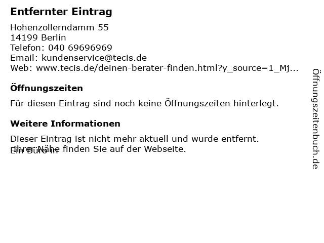| Öffnungszeiten Entfernter Eintrag in Berlin anzeigen | |
