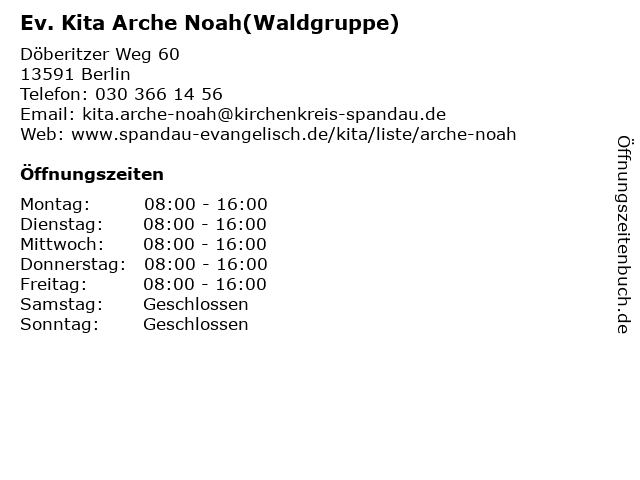 1 Ev. Kita Arche Noah - Ev. Kirchengemeinde zu Staaken (Entfernung: 1,90 km) Stieglakeweg 11, 13591 Berlin 6 Kita Cheburashka-Charlottenburg - Cheburashka gGmbH (Entfernung: 11,75 km) Mindener Str. 11, 10589 Berlin |
