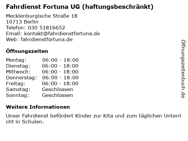 Branchen & Suchbegriffe zu Fahrdienst Fortuna UG (haftungsbeschränkt):fahrdienst, fortuna, haftungsbeschränkt, taxi, ug |