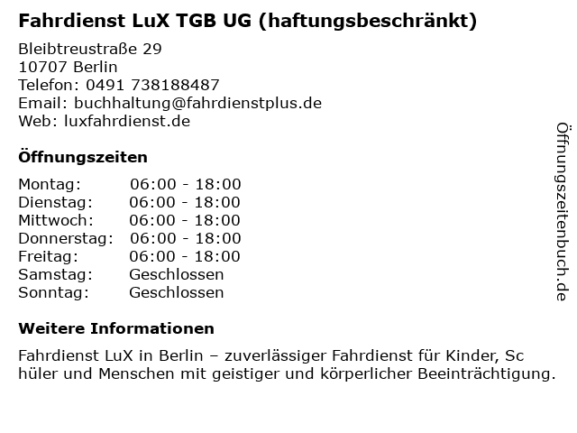 Branchen & Suchbegriffe zu Fahrdienst LuX TGB UG (haftungsbeschränkt):fahrdienst, haftungsbeschränkt, lux, tgb, ug |