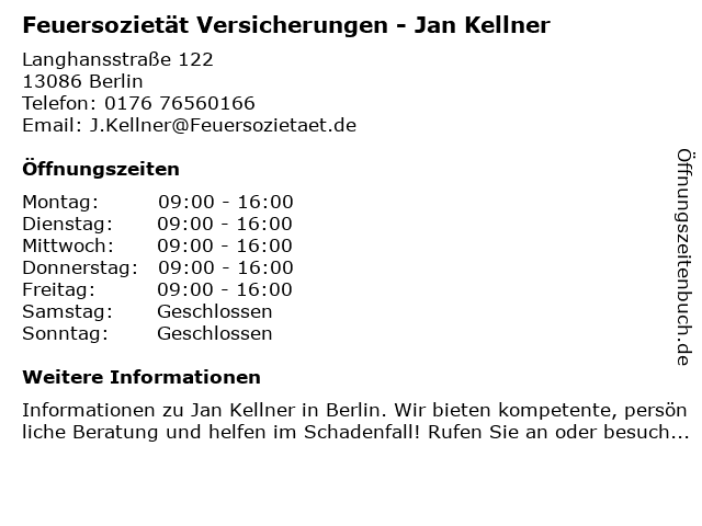 1 Feuersozietät Versicherungen - Michael Schwill (Entfernung: 0,00 km) Langhansstraße 122, 13086 Berlin 2 Feuersozietät Versicherungen - Gabriela Pagels - GESCHLOSSEN (Entfernung: 0,00 km) Langhansstraße 122, 13086 Berlin 6 |