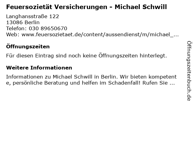 | Feuersozietät Versicherungen - Michael Schwill anrufen | |