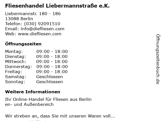 Branchen & Suchbegriffe zu Fliesenhandel Liebermannstraße e.K.:bodenfliesen, designer-fliesen, e.k., fliesen-online-shops, fliesenhandel, liebermannstraße, mediterrane fliesen, vintage-wandfliesen |