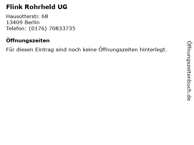 | Öffnungszeiten Flink Rohrheld UG in Berlin anzeigen | |