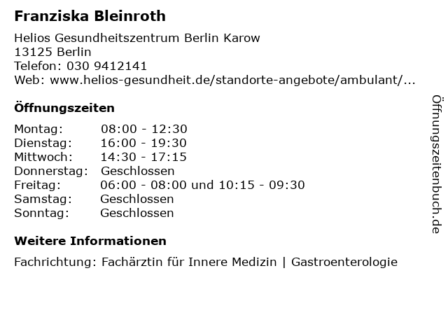| Öffnungszeiten Franziska Bleinroth in Berlin anzeigen | |