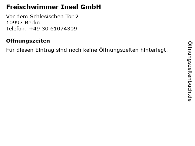 | Adresse Freischwimmer Insel GmbH in Berlin anzeigen |
