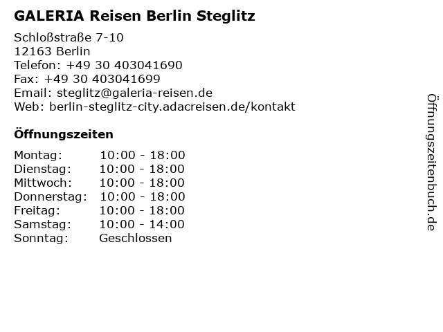 5 Gesellschaft für Bildung, Freizeit und Reisen; M.Kotzurek, C.Wischner, P.Schneemann OHG (Entfernung: 0,56 km) Rheinstraße 29, 12161 Berlin 6 |