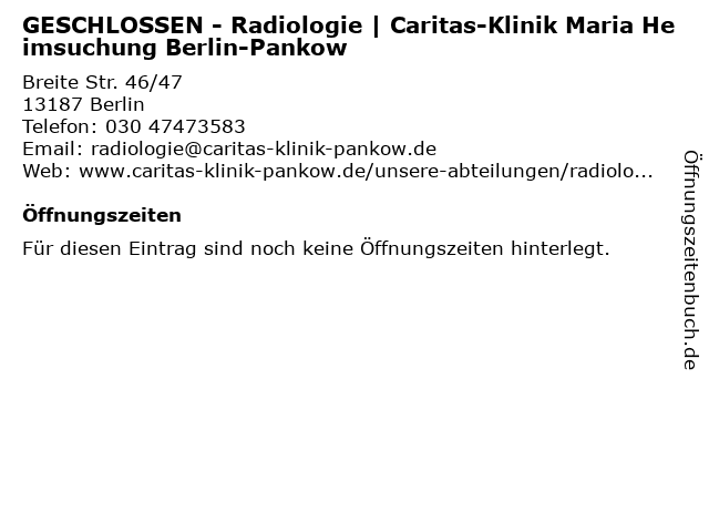 | GESCHLOSSEN - Radiologie | Caritas-Klinik Maria Heimsuchung Berlin-Pankow anrufen | |