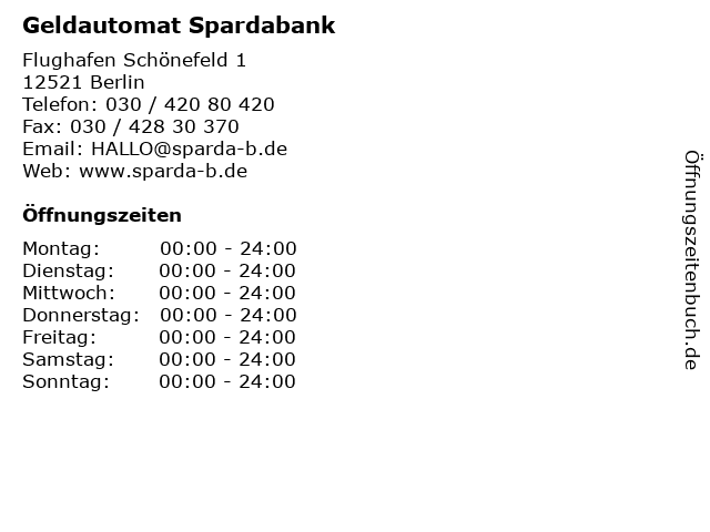 | Öffnungszeiten Geldautomat Spardabank in Berlin anzeigen | |
