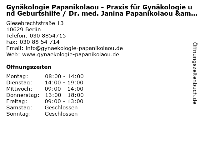 Branchen & Suchbegriffe zu Gynäkologie Papanikolaou - Praxis für Gynäkologie und Geburtshilfe / Dr. med. Janina Papanikolaou & Dr. med. Georgios Papanikolaou:dr., geburtshilfe, georgios, giesebrechtstrasse, gynäkologie, janina, med., papanikolaou, praxis, praxis für gynäkologie, schwangerschaftsberatung |
