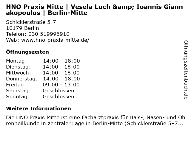 Branchen & Suchbegriffe zu HNO Praxis Mitte | Vesela Loch & Ioannis Giannakopoulos | Berlin-Mitte:giannakopoulos, hno, ioannis, loch, mitte, praxis, vesela |