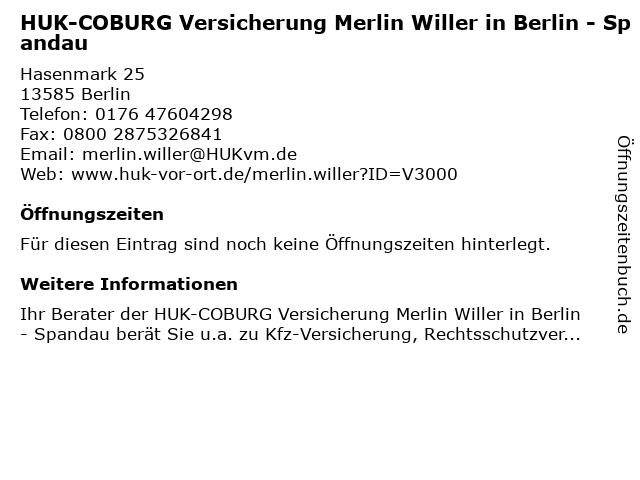 | HUK-COBURG Versicherung Merlin Willer in Berlin - Spandau anrufen | |