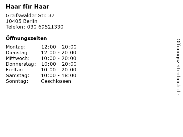 | Öffnungszeiten Haar für Haar in Berlin anzeigen | |
