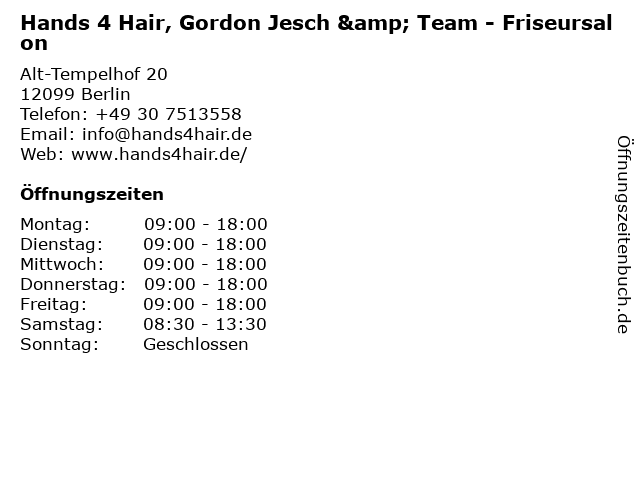 Branchen & Suchbegriffe zu Hands 4 Hair, Gordon Jesch & Team - Friseursalon:friseursalon, gordon, hair, hands, jesch, team |