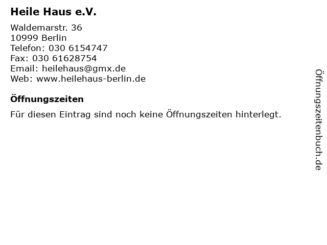 | Öffnungszeiten Heile Haus e.V. in Berlin anzeigen | |