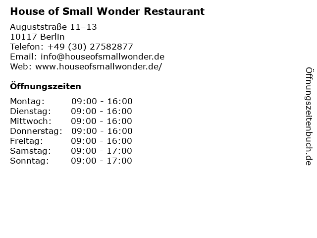 Branchen & Suchbegriffe zu House of Small Wonder Restaurant:getränke, house, of, restaurant, service, small, speisen, wonder |