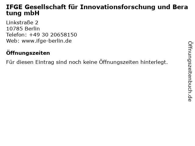 | IFGE Gesellschaft für Innovationsforschung und Beratung mbH anrufen | |