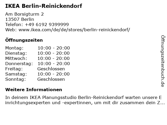 | Öffnungszeiten IKEA Berlin-Reinickendorf in Berlin anzeigen | |