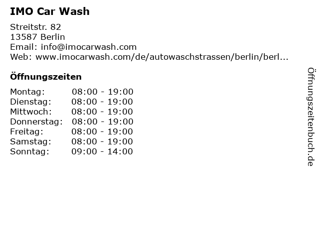 | Öffnungszeiten IMO Car Wash in Berlin anzeigen | |