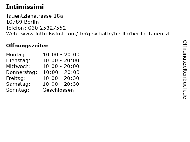 | Öffnungszeiten Intimissimi in Berlin anzeigen | |