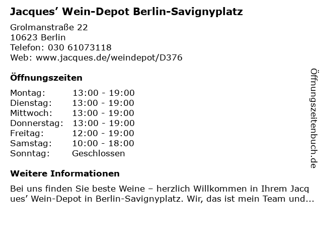 Branchen & Suchbegriffe zu Jacques’ Wein-Depot Berlin-Savignyplatz:depot, jacques’, savignyplatz, wein |