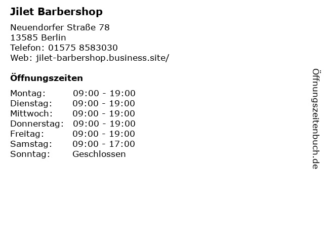 | Öffnungszeiten Jilet Barbershop in Berlin anzeigen | |