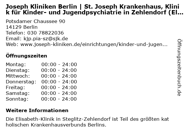 Branchen & Suchbegriffe zu Joseph Kliniken Berlin | St. Joseph Krankenhaus, Klinik für Kinder- und Jugendpsychiatrie in Zehlendorf (Elisabeth-Klinik):elisabeth, joseph, jugendpsychiatrie, kinder, kinderpsychiatrie, klinik, kliniken, krankenhaus, zehlendorf |