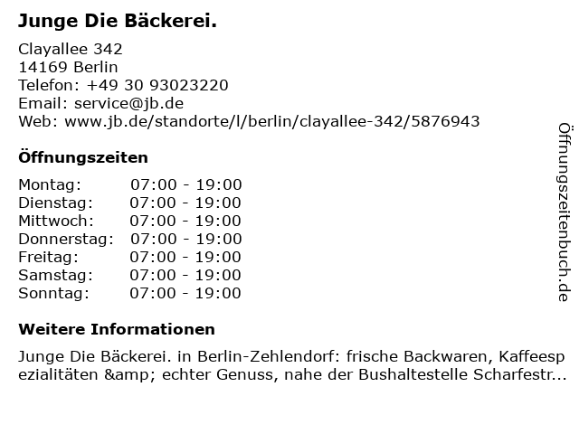 | Öffnungszeiten Junge Die Bäckerei. in Berlin anzeigen | |